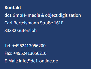 In modernen Studios, ausgestattet mit führenden Referenzsystemen und aktueller Infrastruktur digitalisiert dc1 Ihre Inhalte der verschiedensten Audio-, Video- und Filmformate.